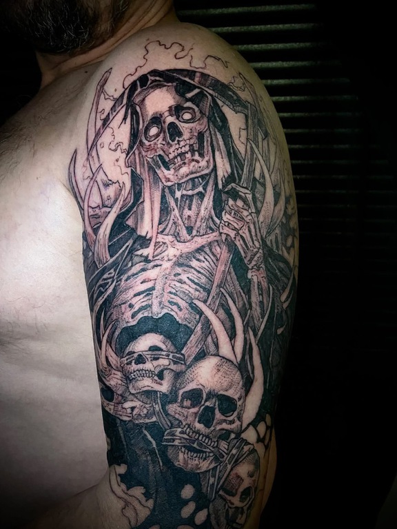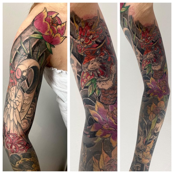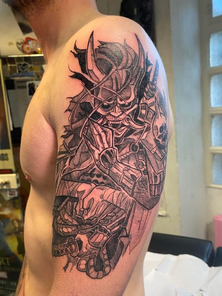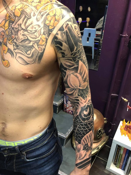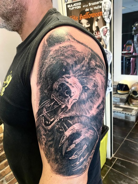 "Explorez l'art intemporel du tatouage par MR JO: SULACCO TATTOO De la finesse du style japonais aux créations figuratives éclatantes, en passant par le réalisme en noir et gris. Pour l'ensemble